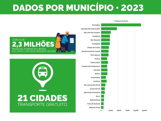 Outras grandes cidades brasileiras que não são capitais também registraram importante participação no pleito. O município de Guarulhos (SP) somou 118.015 votantes, um comparecimento de 12,55% do eleitorado. Em Contagem (MG), votaram 25.498 pessoas, o que representa 5,61% dos eleitores. Já em Jaboatão dos Guararapes (PE), 46.718 pessoas votaram no pleito, o que correspondeu a 9,7% dos eleitores aptos da cidade. A soma de votos de 24 dos maiores municípios do país – com exceção das capitais – alcançou a marca dos 541 mil votos.
