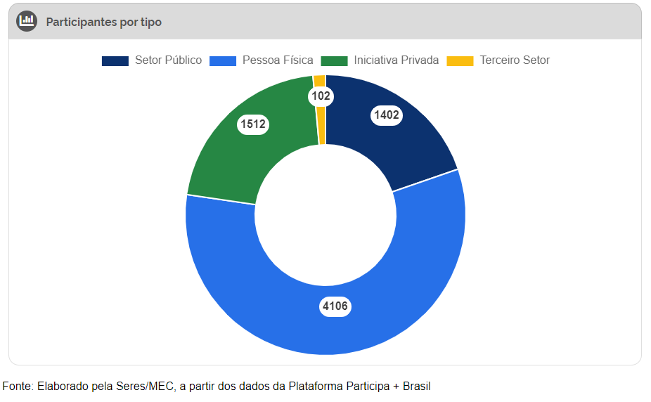 Perfil – A consulta pública teve participação predominante de pessoas físicas, somando mais de 57% das contribuições. Os participantes vinculados à iniciativa privada e ao setor público representaram, respectivamente, cerca de 21% e 19%. Participantes do terceiro setor somaram menos de 2%.