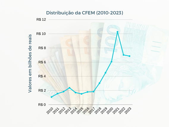 Confira abaixo o gráfico comparativo de arrecadação de CFEM entre os anos de 2010 e 2023: