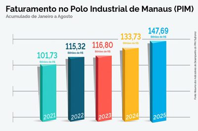 Polo Industrial de Manaus cresce 10,4% até agosto e faturamento bate R$ 147,6 bi